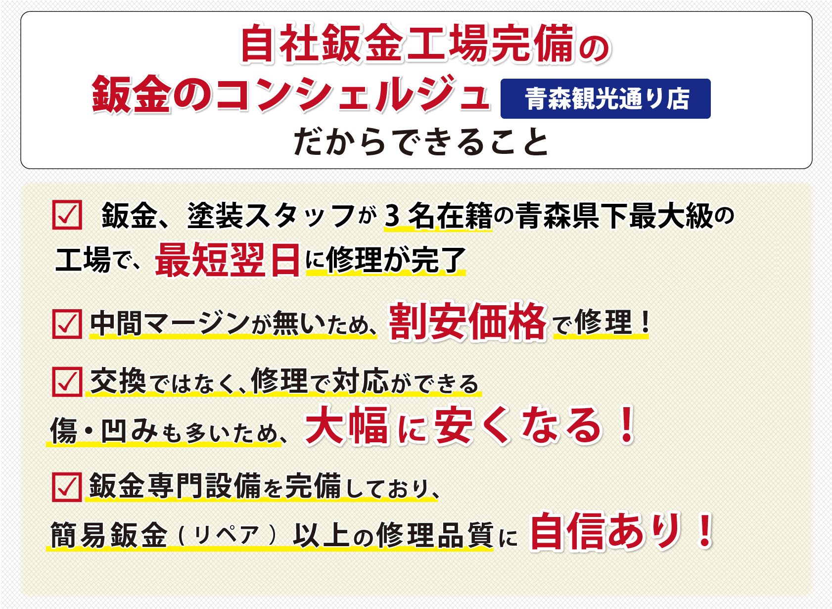 鈑金のコンシェルジュ青森観光通り店の安さには理由があります!