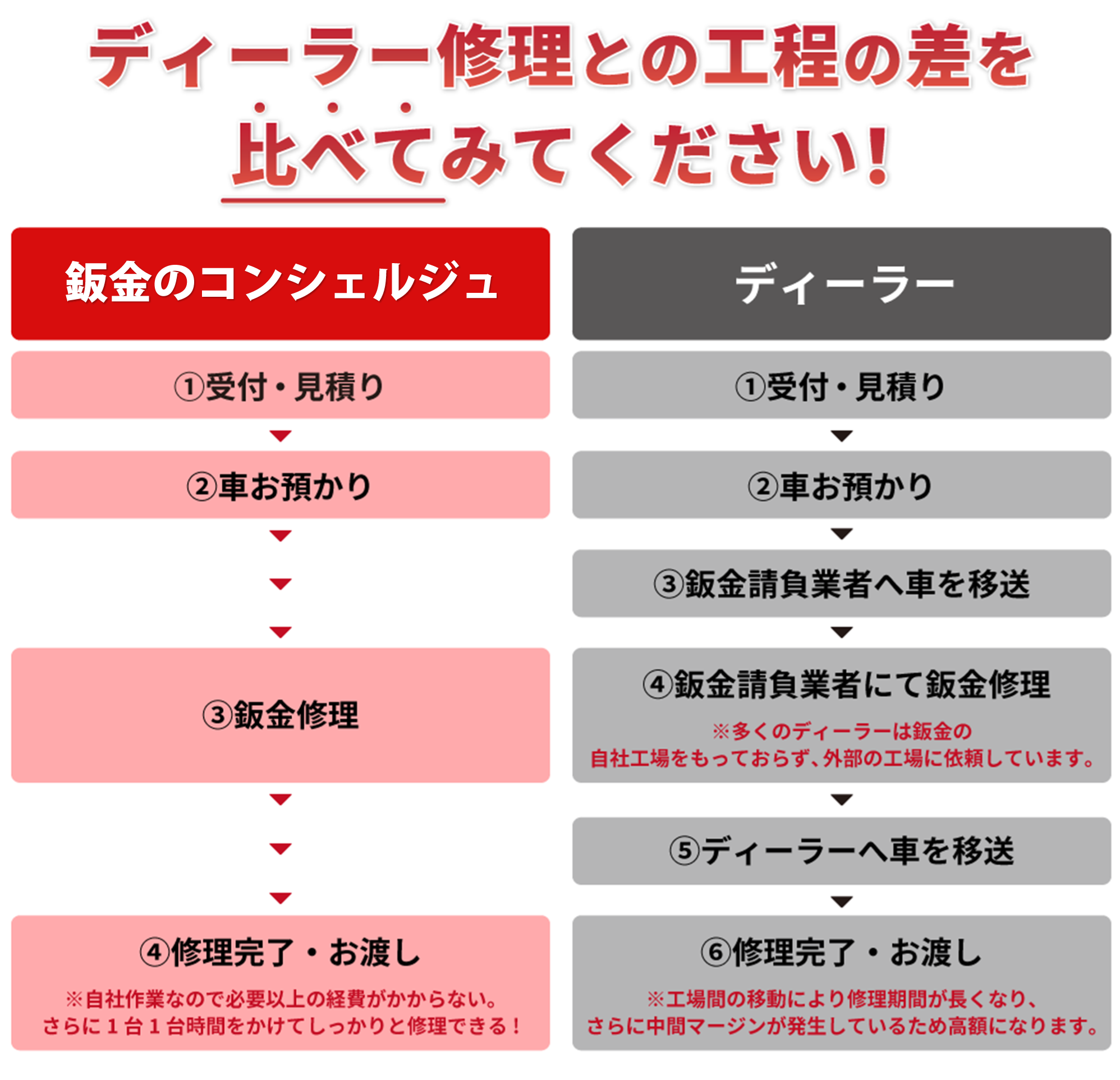 ④最新設備が整った板金・修理専門店だからこそできる作業工程!無駄な工程が無い分コストを圧縮!