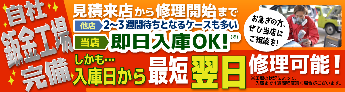 長年積み重ねてきた経験や板金ノウハウによって、以前のように何日もお預かりせずに施工が完了できるようになりました。 バンパー補修以外でも、修理完了まで2日~3日でお車のお引き渡しが可能です。